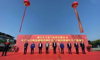 4月20日,集團下屬子公司-浙江久立電氣材料有限公司年產18萬噸電磁線用銅桿及1萬噸特種銅桿產品生產線項目開工儀式在湖州安吉舉行。