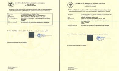 近日,公司通過RINA意大利船級社認證。這是繼獲得CCS中國船籍社、DNV-GL挪威船級社、德國勞氏船級社、BV法國船級社、ABS美國船級社、LR英國勞氏船級社等主要船級社認證之后,